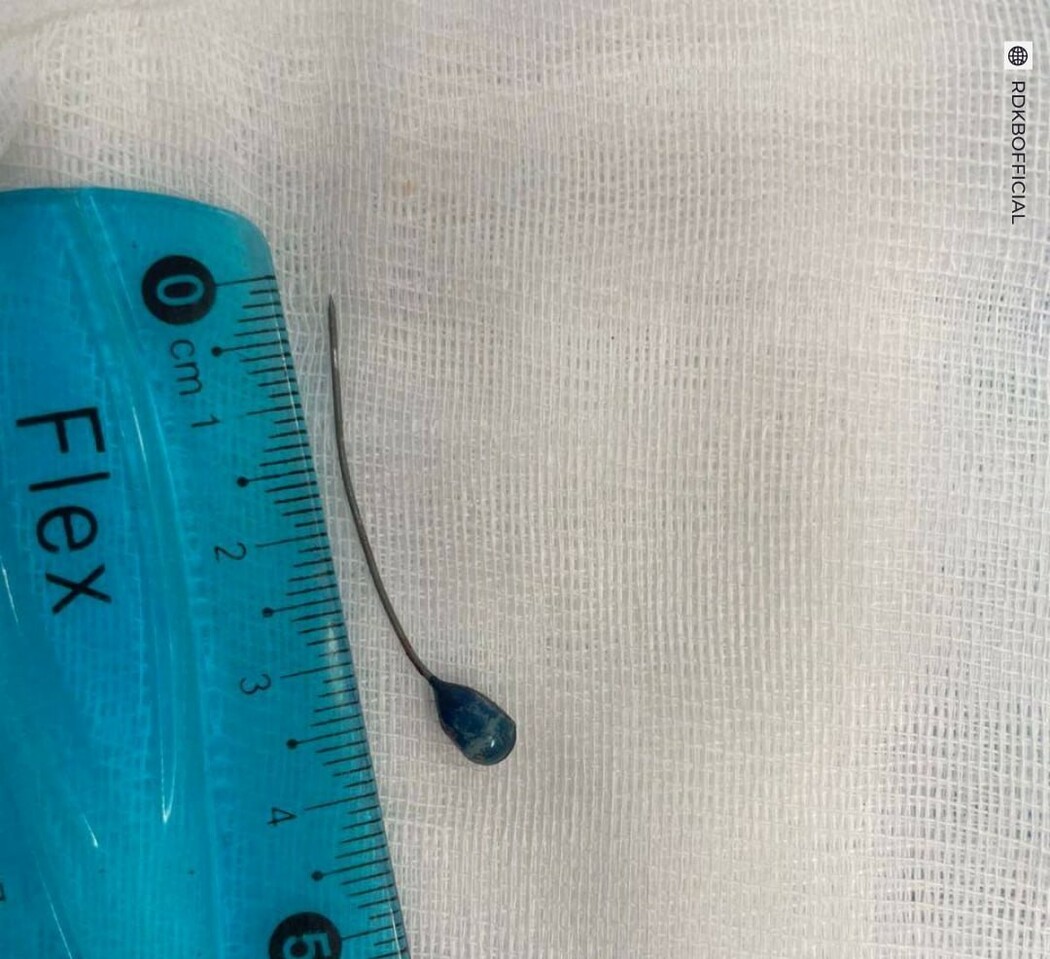 «Специалисты отделения под визуальным контролем аккуратно извлекли инородное тело за колпачок булавки с помощью оптических щипцов. Это позволило минимизировать кровотечение, которое купировалось самостоятельно», — рассказали в Telegram-канале клиники.
