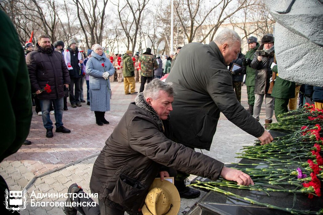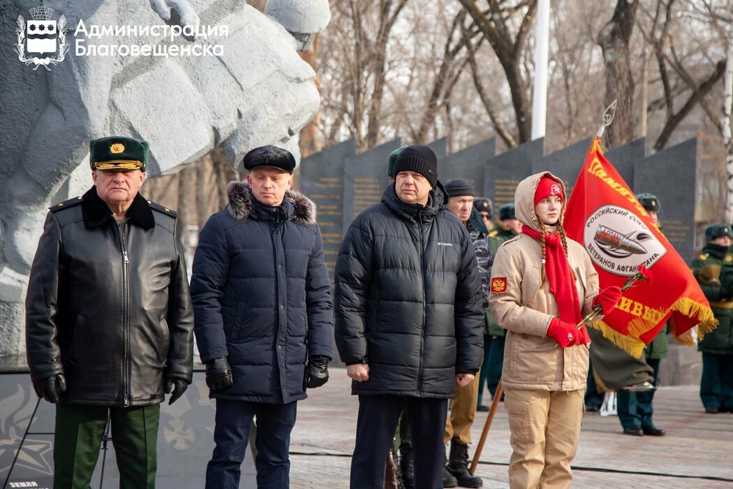В Благовещенске 15 февраля почтили память воинов-интернационалистов. Цветы к памятнику защитникам возложили в одноименном сквере. Событие объединило представителей городской администрации, депутатов, ветеранов боевых действий, юнармейцев, общественников.