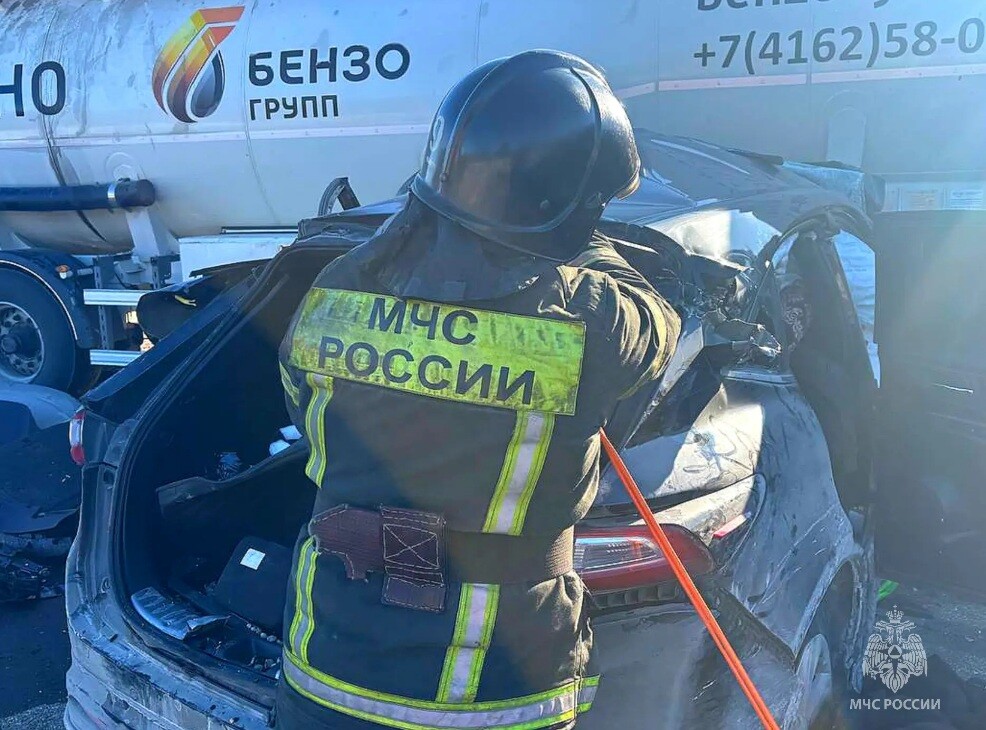 «По предварительной информации в 13:30 водитель, управляя автомобилем Toyota Harrier, выехал на полосу, предназначенную для встречного движения, и допустил столкновение с бензовозом. В результате автоаварии водитель Toyota и трое его пассажиров от полученных травм скончались на месте. На месте происшествия работают сотрудники полиции», – сообщает региональная Госавтоинспекция.