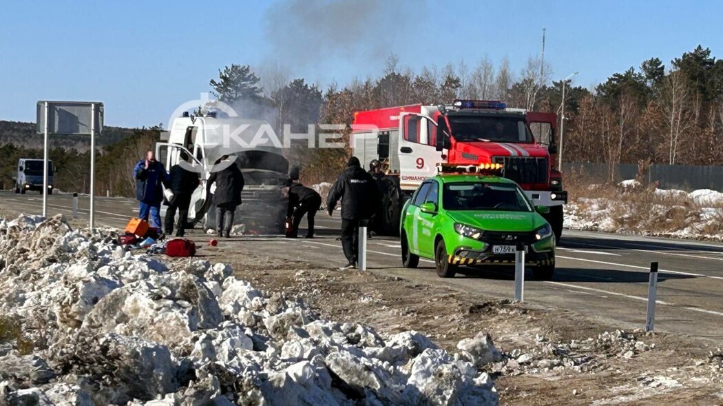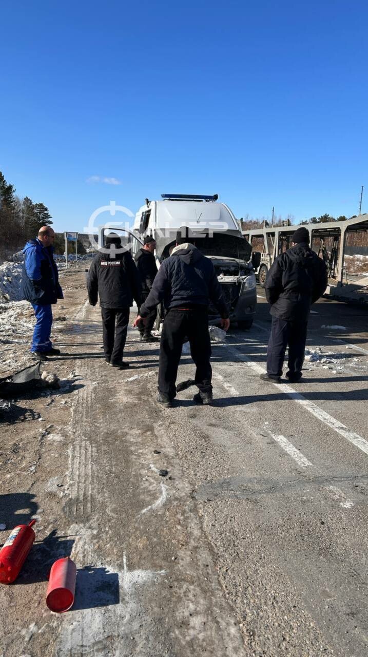 В Шимановском округе к месту жесткого ДТП, где столкнулись легковушка и бензовоз, не доехала скорая помощь. Автомобиль загорелся на трассе.