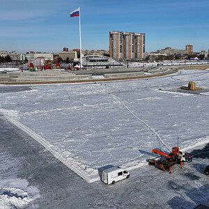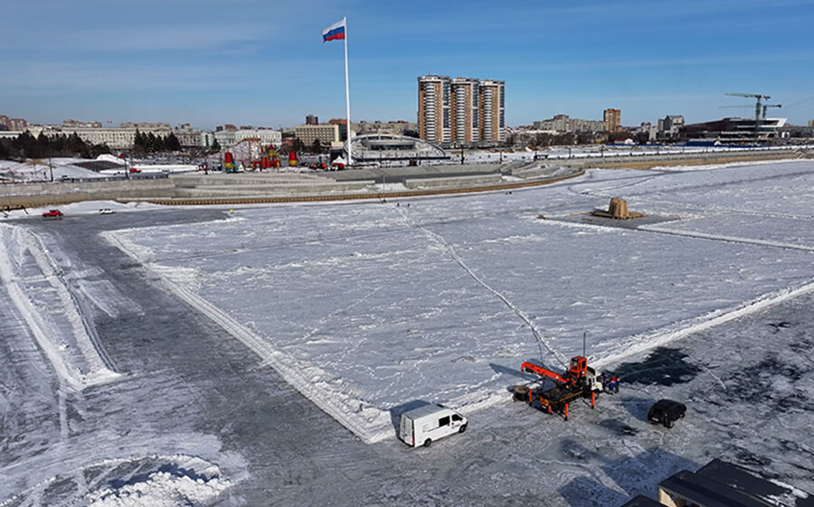 Готовность спортивного городка на льду пограничной реки Амур составляет 90 %. Сегодня организаторы завершили подготовку трассы для дрифта. К концу недели раллийная дорога также будет готова.
