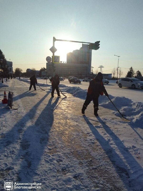 Пресс-служба городской администрации информирует, что 26 числа работники ГСТК очищали улицы Чайковского, Мухина, Комсомольской и Красноармейской, а крупные магистральные улицы подсыпали противогололедным материалом. Также снегоуборочная техника прошла по тротуарам на улице 50 лет Октября, Институтской и Василенко. На улице Амурской ресурсоснабжающие организации вручную очищают ото льда канализационные люки.