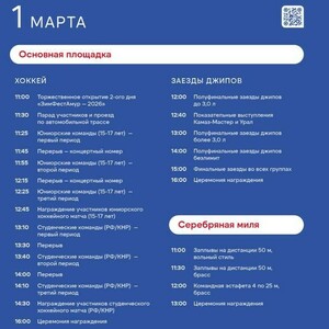 В 11:30 пройдет парад участников — машины проедут по ледовой трассе, где впоследствии в 12 часов стартуют заезды джипов, а с 12:40 до 13:00 - заезды команд «КамАЗ-мастер» и UralMotorsport..