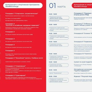 С 10 часов на набережной Амура работают праздничные площадки, где можно покататься на собачьей упряжке, сыграть в хоккей, побегать на надувных лыжах, потанцевать с аниматорами, а также угоститься пирожками с горячим фиточаем.