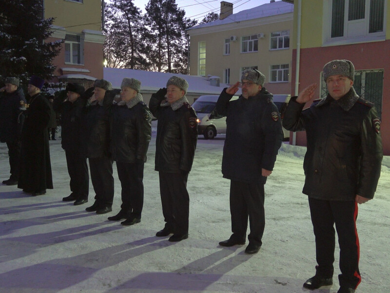 По сложившейся традиции, духовную поддержку правоохранителям оказал священнослужитель. Представитель Благовещенской епархии окропил личный состав святой водой и благословил полицейских.