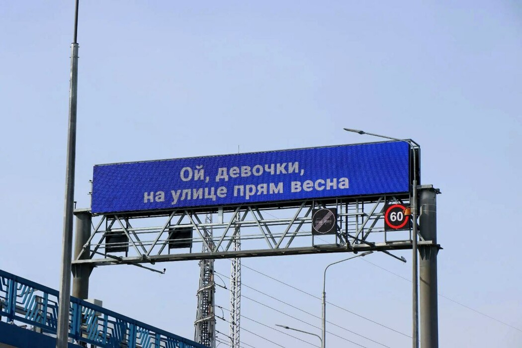 Экраны транслируют поздравление в честь 8 Марта, сообщает минтранс области.