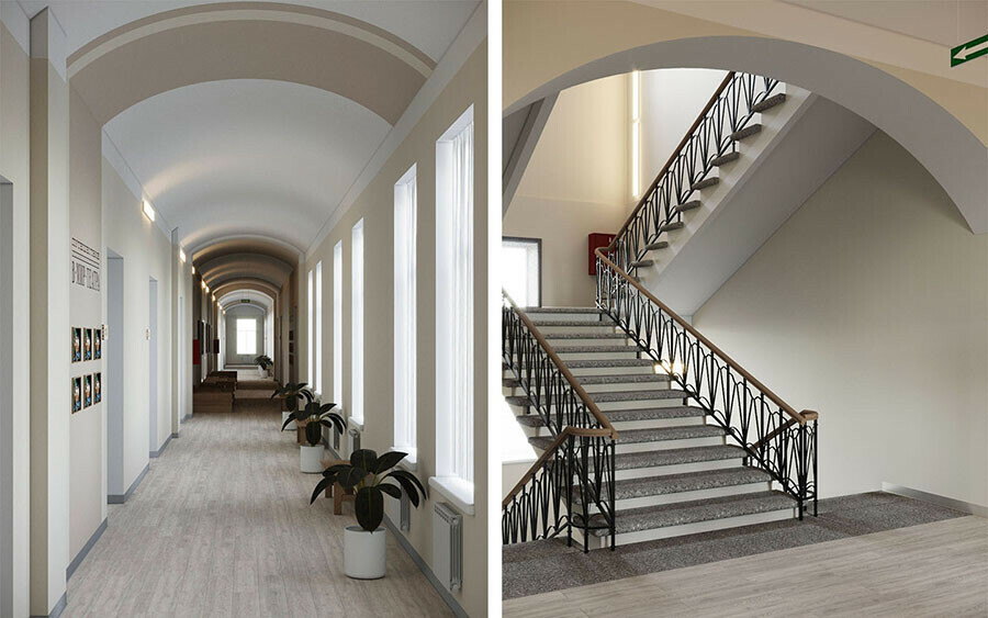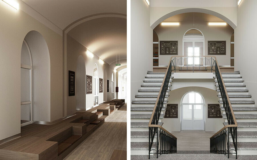 Команда Центра развития территорий (ЦРТ) разработала интерьерные решения для коридоров старейшего учебного заведения Благовещенска с более чем 150-летней историей. Специалисты представили свое видение для второго и третьего этажей Алексеевской гимназии, а также его главной лестницы. Создавая проект, они постарались найти баланс между исторической атмосферой и практичностью.