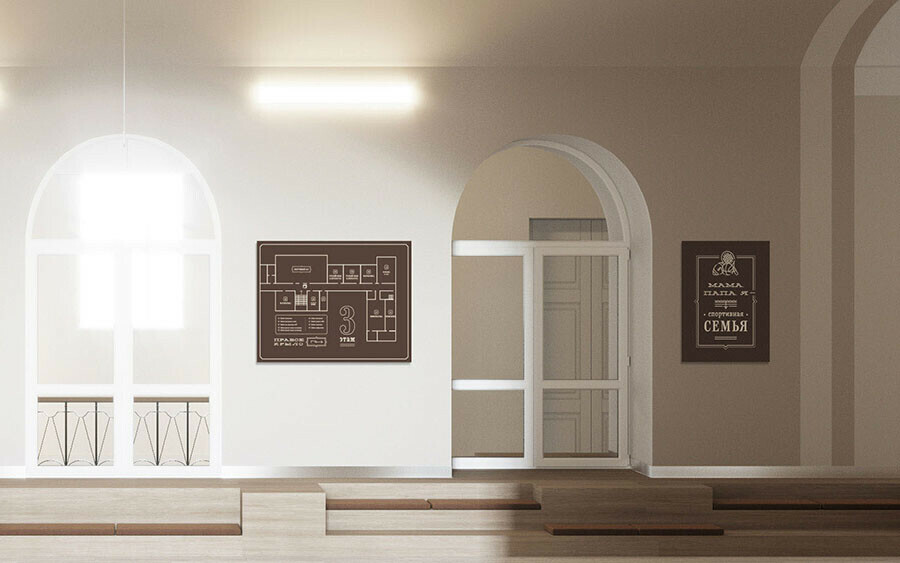 Несмотря на единое оформление, второй и третий этаж будут отличаться тематикой: на стенах коридоров разместят разнообразные экспозиции и информационные стенды. На втором этаже они будут объединены темой истории учебного заведения, на третьем — темой внеучебной деятельности. Все зоны будут оформлены в едином стиле. Для каждой разработали графические элементы и интерьерные надписи. В пакет графических решений для гимназии также вошли таблички для кабинетов, схемы навигации, тематические плакаты и фотозона. Макеты для них создали дизайнеры Экспоцентра ЦРТ.