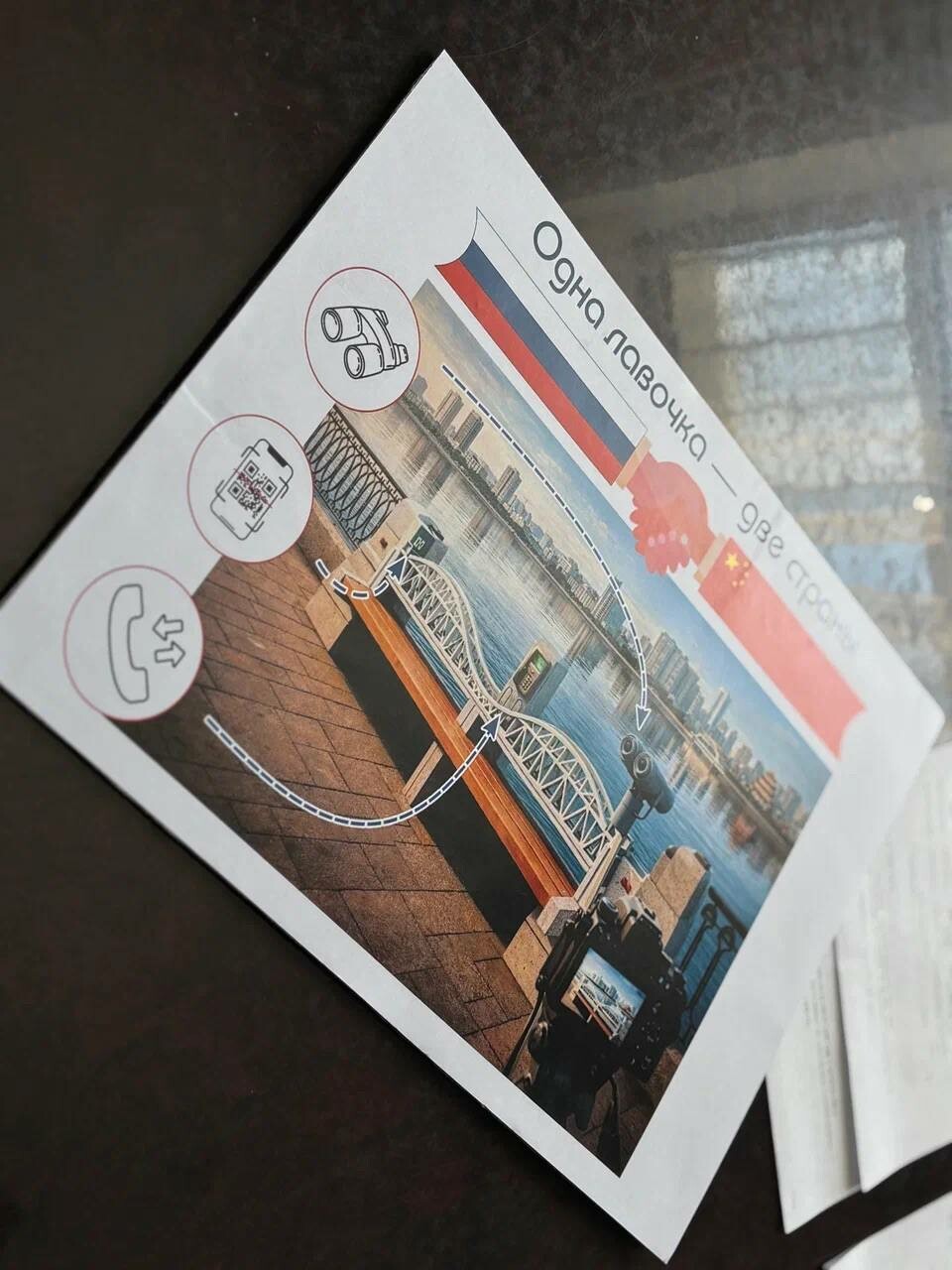 По проекту Тимофея, на набережной Благовещенска и на китайской стороне устанавливаются две одинаковые скамейки. Спинка каждой выполнена в виде международного моста — как символ связи между городами. Лавочка оборудована биноклем, чтобы можно было разглядеть соседа на другом берегу, и телефоном — чтобы поговорить. А ещё через QR-код работает нейросеть, которая «дорисовывает» тебя на фотографии: создается эффект, будто ты сидишь на такой же лавочке в Хэйхэ.