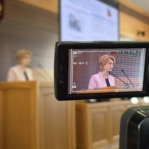 С основным докладом выступила министр социальной защиты населения Амурской области Наталья Киселёва.