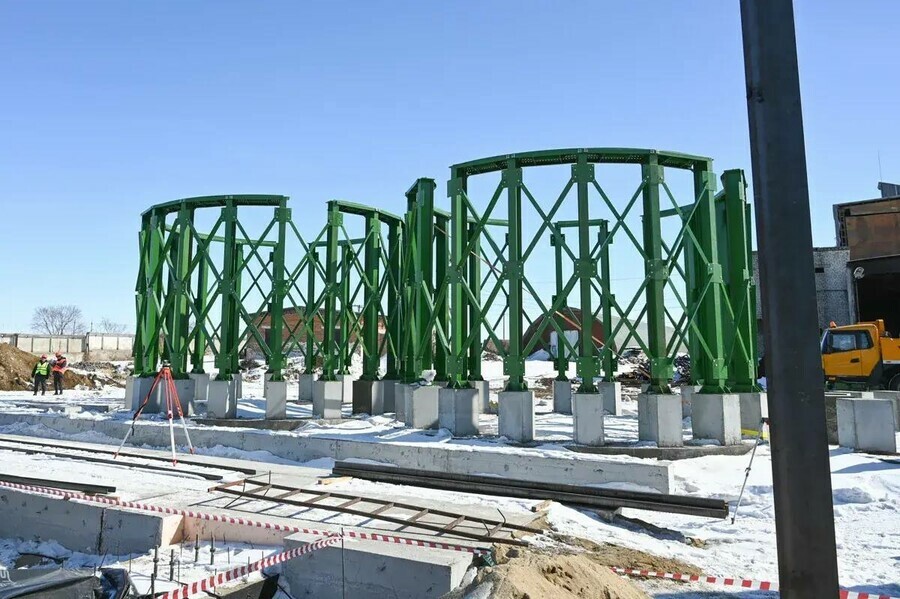 Центр начали строить в прошлом году. Ввести его в эксплуатацию рассчитывают до конца текущего года. На сегодняшний день рабочие монтируют металлоконструкции зданий.