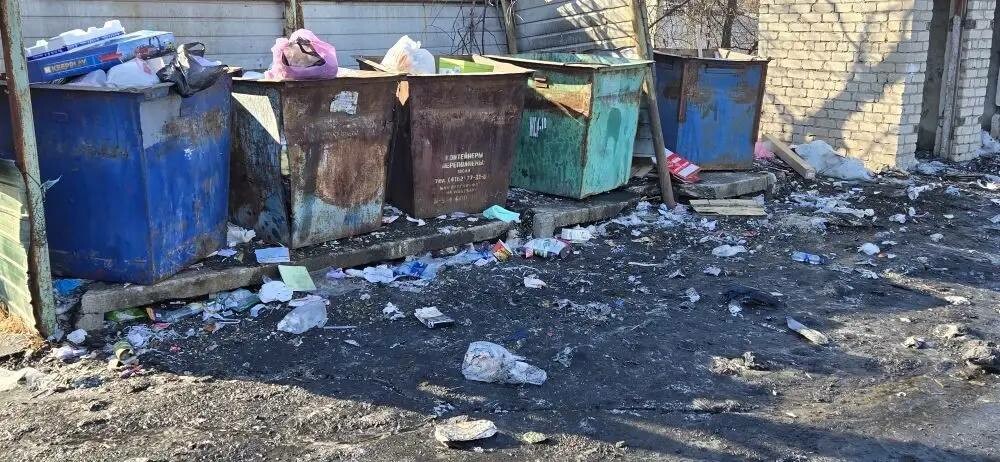 На кадрах видно, что на десятки метров от контейнерной площадки разбросан мусор, а земля выглядит, как вулканическая из-за работы котельной. Пока, по словам местных жителей, никто не спешит убирать территорию.
