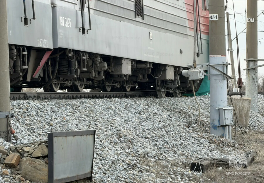 Пресс-служба Дальневосточной железной дороги опубликовала кадры с места аварии. В результате ДТП пострадавших нет. Произошел сход тележки грузового вагона.