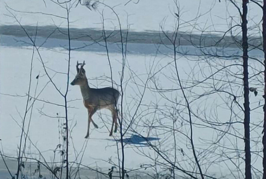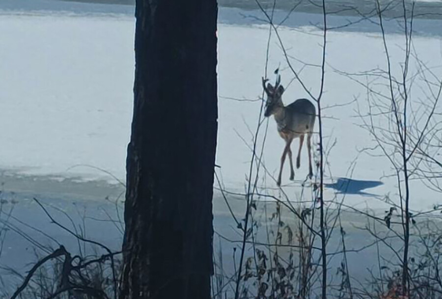 Самец косули с успехом продемонстрировал себя охотоведам. Они застали его во всей красе на льду реки Ульма в Мазановском округе Амурской области. И не зря – специалисты восхитились, и фотосессия получилась неплохая.