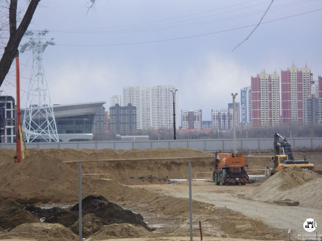 На территории «Золотой мили» в Благовещенске начинается строительство пятизвездочной гостиницы. Телеграм-канал «Благовещенск. Строительство» обратил внимание, что на территории будущего отеля находятся башенные краны ZOOMLION, ранее участвовавшие в строительстве канатной дороги.
