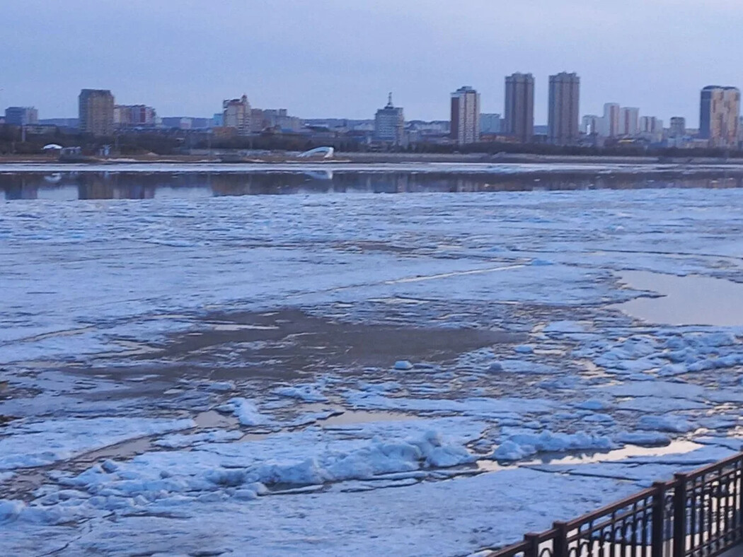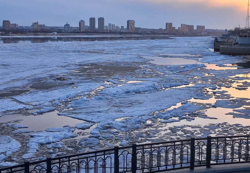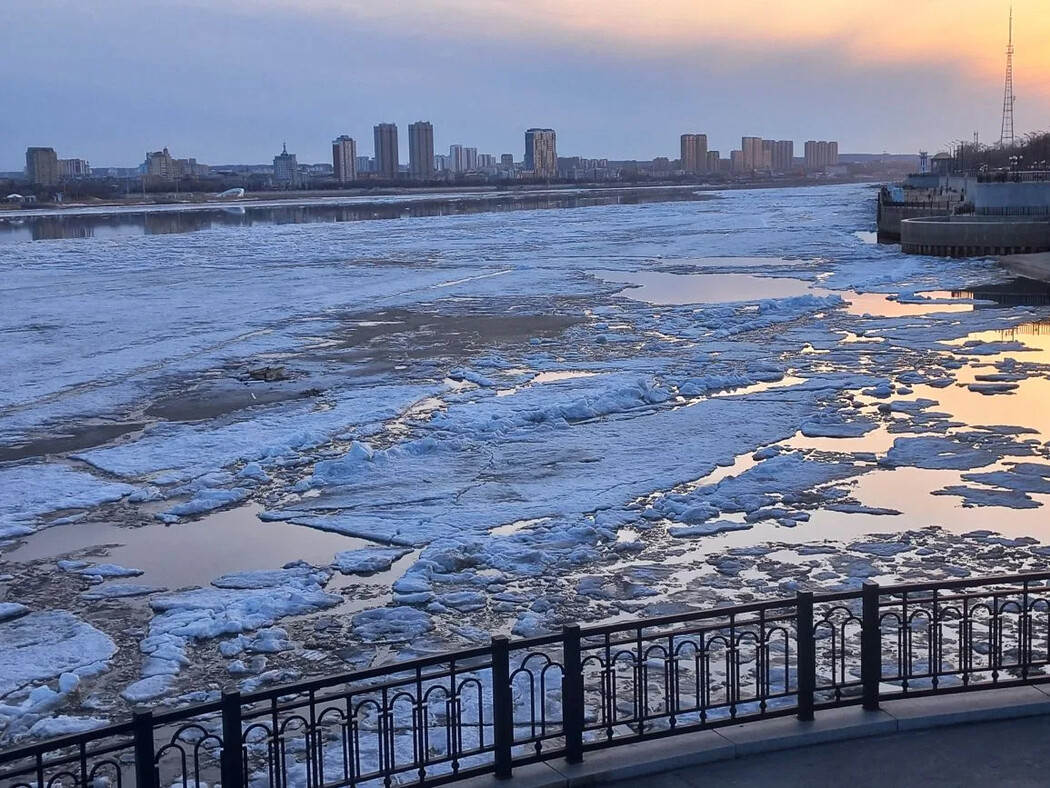 Ледоход начался на пограничной реке Амур в районе китайского Хэйхэ и российского Благовещенска. Об этом сообщает телевидение Хэйхэ.