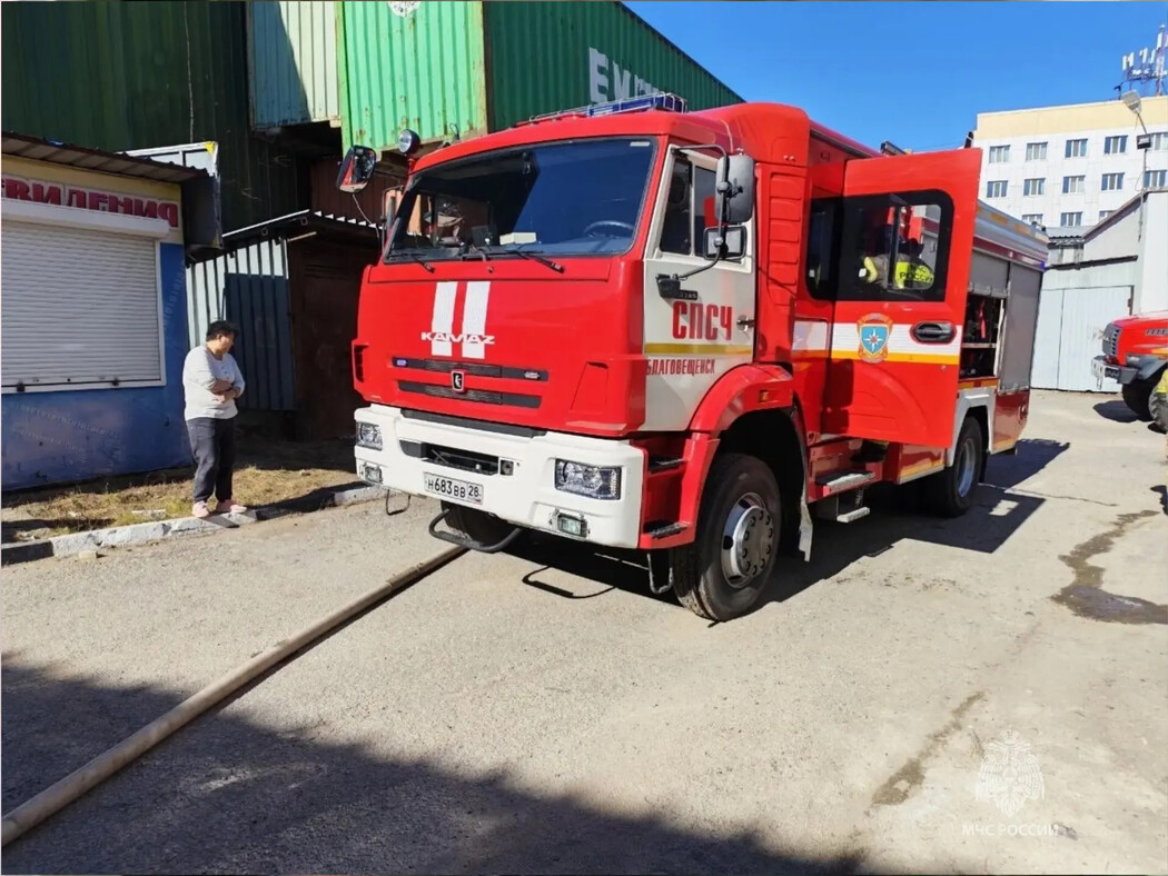 К ликвидации пожара привлекались 7 боевых расчетов МЧС России и спасатели Благовещенска. Погибших, пострадавших нет.