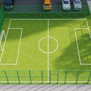 «Проект двора на Калинина, 148 — пожалуй, один из самых спортивных в этом сезоне. На месте старой спортивной «коробки» сделают современное поле для мини-футбола с искусственным газоном, парой ворот, соответствующей разметкой и новым ограждением. Также во дворе установят антивандальный стол для игры в настольный теннис, — рассказали специалисты Ситуационного центра. — Для жителей оборудуют отдельную зону со скамьями под навесами и небольшие уголки отдыха у каждой из площадок. Плюс участие в программе поможет решить вопрос с освещением территории».