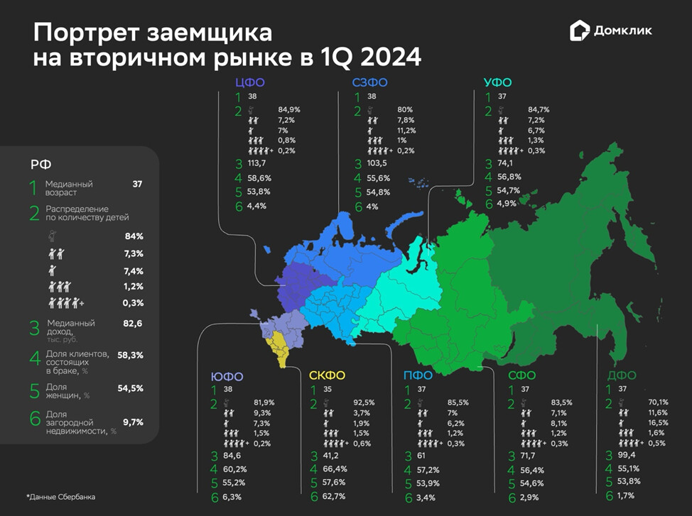 Портрет заемщика на вторичном рынке. Данные Сбербанка за первый квартал 2024 года.