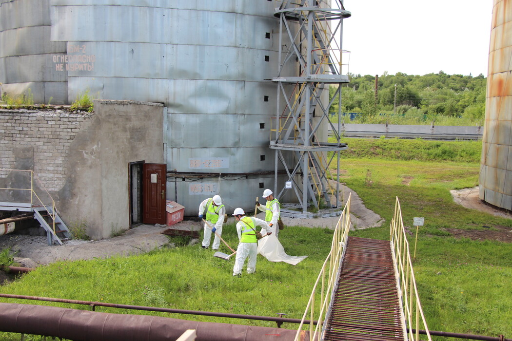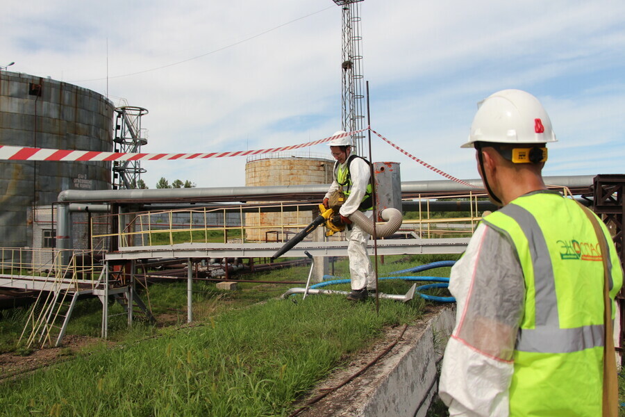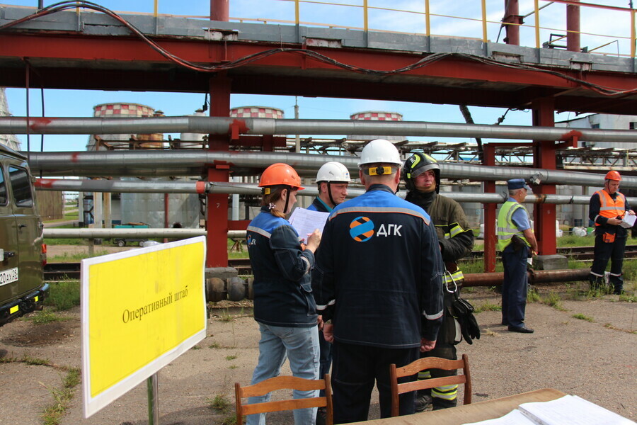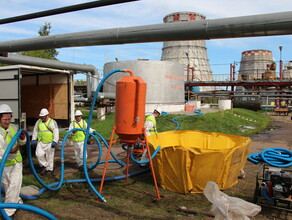 По сценарию, во время планового обхода территории станции машинист насосных установок обнаружил повреждение мазутного резервуара. Далее было оперативно проведено заседание комиссии по чрезвычайным ситуациям и запущен отработанный алгоритм действий по локализации и ликвидации разлива нефтепродуктов и устранению последствий.