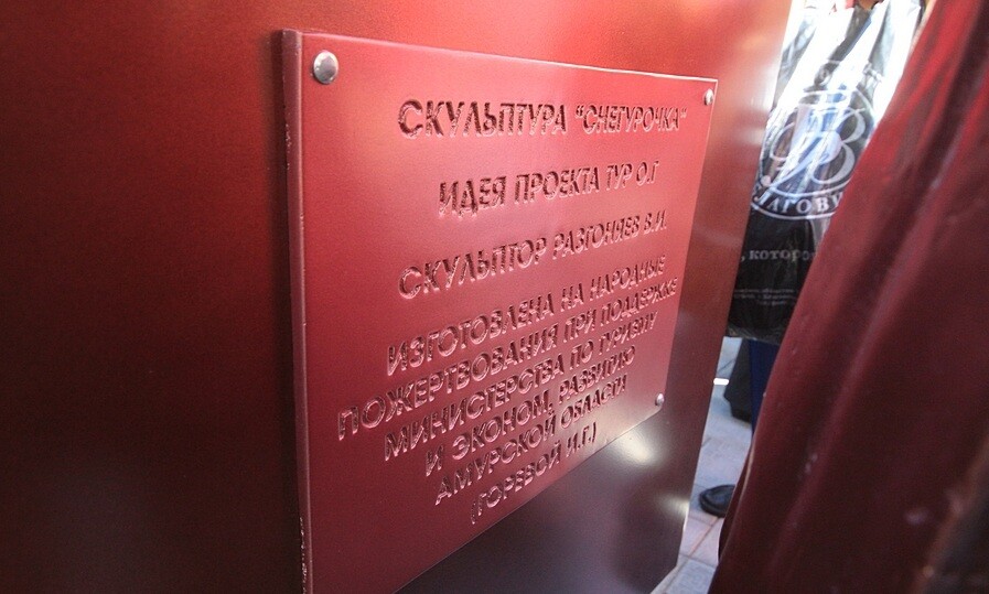 «Всего на изготовление и установку памятника требовалось 842 тысячи, из них 380 тысяч собрали люди, – рассказывала организатор проекта Ольга Тур. – Не хватало еще почти полмиллиона, и мы обратились к министру внешнеэкономических связей, туризма и предпринимательства Амурской области Игорю Геннадьевичу Горевому. Мне сказали готовить документы, а после этого выделили деньги».