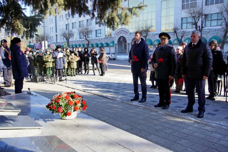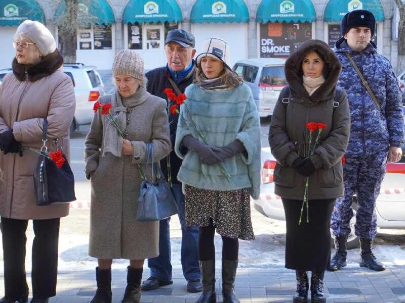 Торжественным шествием к мемориалу проследовали почётный караул, начальник УМВД России по Амурской области генерал-майор полиции Олег Шилов, зампред амурского правительства Андрей Дюмин, заместитель главного федерального инспектора по Амурской области Владимир Дубовицкий, члены семей погибших, ветераны органов внутренних дел и другие.