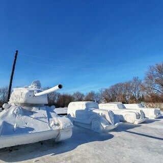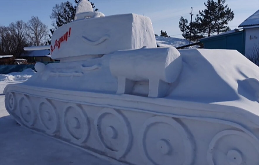 В конце прошлого года, к завершению Года 85-летия Победы, он построил на своем участке точную снежную копию танка Т-34-85 в полную величину.