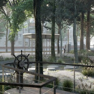 В нескольких частях сквера водников оборудуют зоны для тихого отдыха. В центре же появятся прогулочные и транзитные дорожки – железобетонные и деревянные на сваях. Их специально поднимут над уровнем земли – сквер сильно топит во время дождей и таяния снега. На маршруте в виде деревянных настилов появится имитация капитанского мостика со штурвалом.