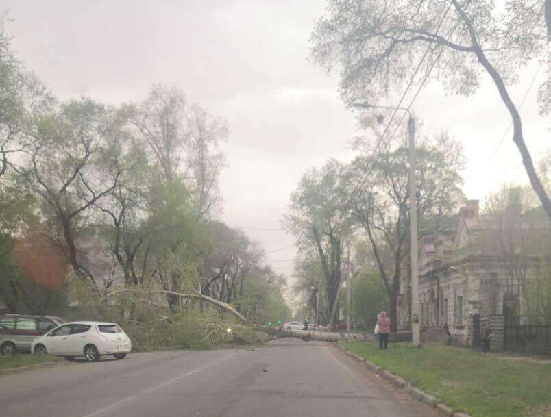 Похожие ситуации возникают в разных районах Благовещенска. В центре города в районе БГПУ сломанные ветки попадали на автомобили.
