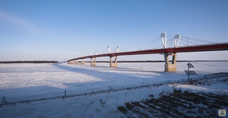 Летом, по словам блогера, попасть из Благовещенска в Хэйхэ можно на пароме (на самом деле на теплоходе – Прим. ред.), а зимой – «прямо по льду на автобусе». Потом он все-таки добавляет, что автобусы ходят не по самому льду, а по понтонному мосту. По нему-то гости амурской столицы и отправились в соседний Хэйхэ. Причем, по озвученной в выпуске информации, между двумя городами есть некая «приграничная полоса», которая «уже не Россия, но еще и не Китай».