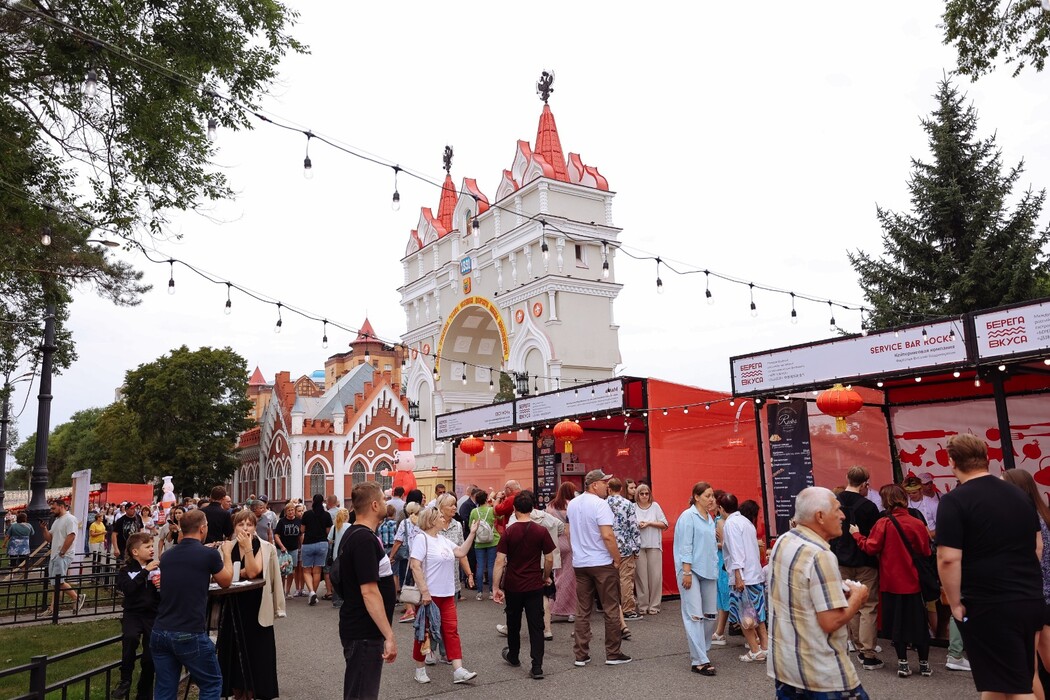 В амурской столице состоялось торжественное открытие второго гастрономического фестиваля «Берега вкуса». В этом году гастрономическую улицу на набережной реки Амур увеличили – она разместилась на Краснофлотской от переулка Святителя Иннокентия до улицы Калинина.