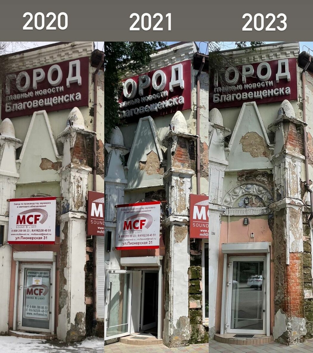 Благовещенские неокраеведы публиковали фотографии разрушающегося старинного здания.