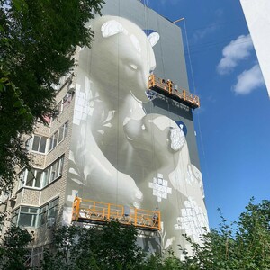 Над монументальным изображением «фарфорового» белого медведя с медвежонком работает команда SPEKTR из России. SPEKTR – это уличные художники из Екатеринбурга и Москвы. Команда специализируется на художественном оформлении общественных пространств, работе с контекстом территорий. На счету художников более 500 арт-объектов разных направлений, найти которые можно в Омске, Грозном, Екатеринбурге, Томске и других городах.