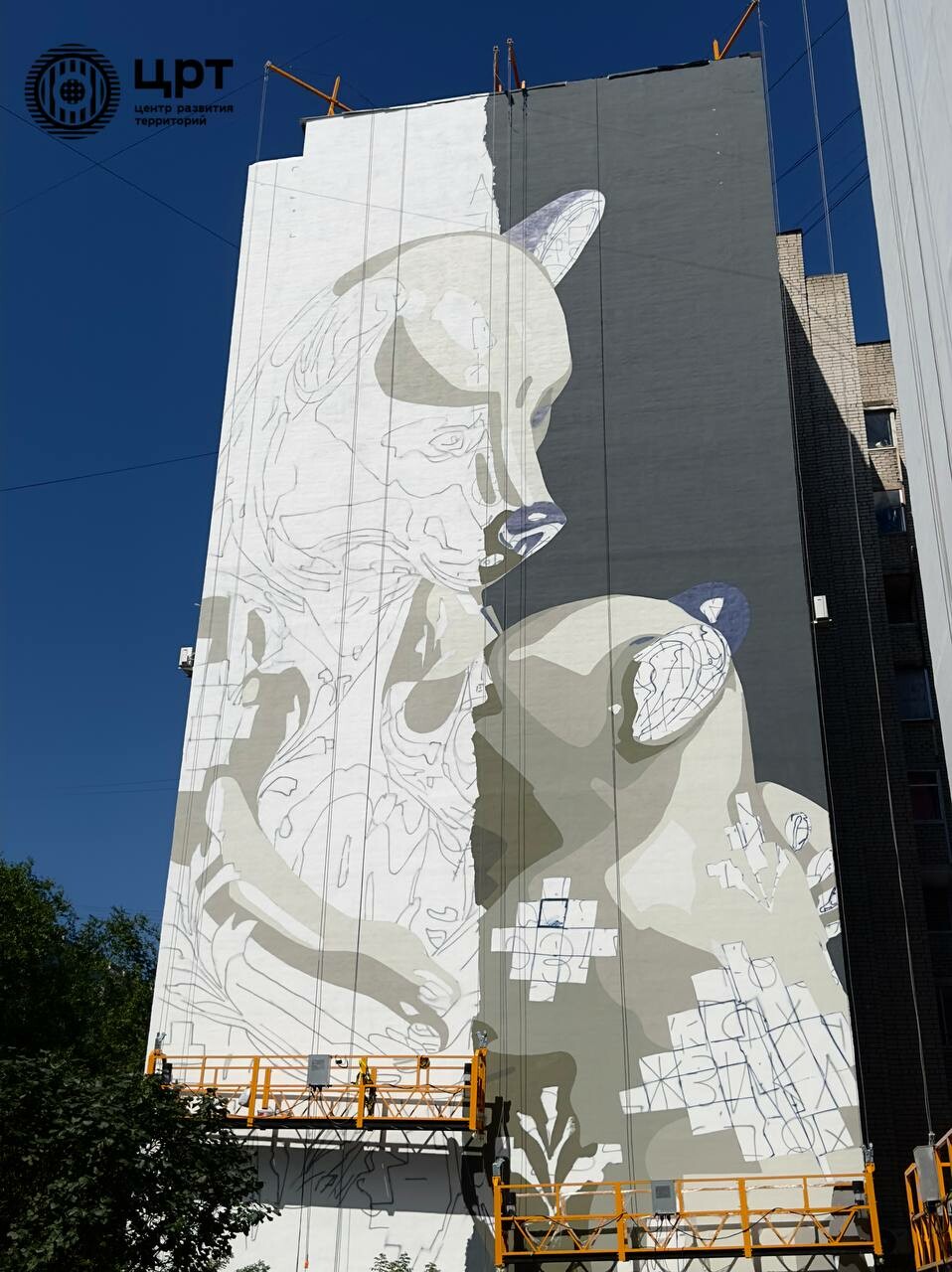 Над вторым муралом – образом панды – будет работать уличный художник NUT из китайской провинции Гуандун. Он пока еще не прибыл в амурскую столицу. В Благовещенск он едет после создания другого своего проекта. Пока его стена-холст пока пустует.
