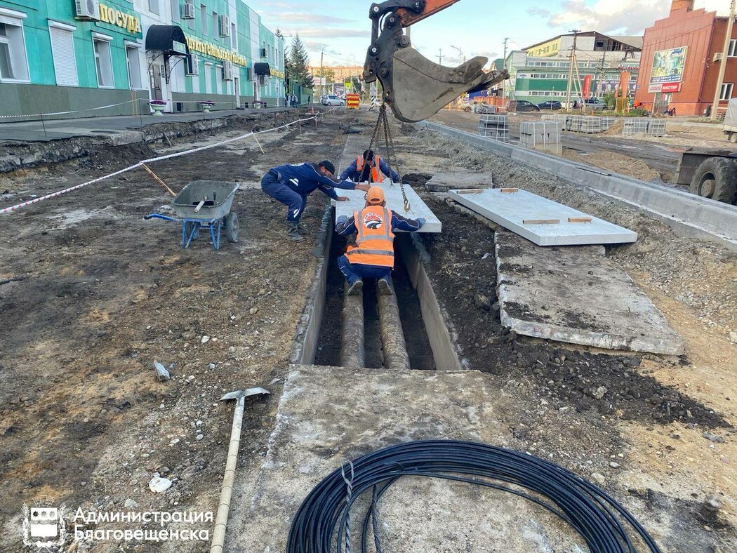 В столице Приамурья продолжается масштабное обновление дорожной сети. На нескольких ключевых магистралях города в рамках нацпроекта «Инфраструктура для жизни» меняют не только дорожную одежду, но и подземные коммуникации. Одна из улиц, которую ремонтируют в этом году, – Мухина.