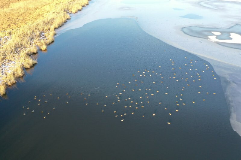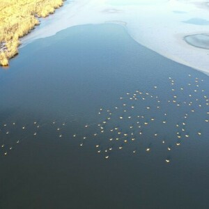 Между тем на некоторых незамерзших озерах еще можно встретить стаи уток. Около сотни крякв заметили на озере Дробино в Муравьевском заказнике.