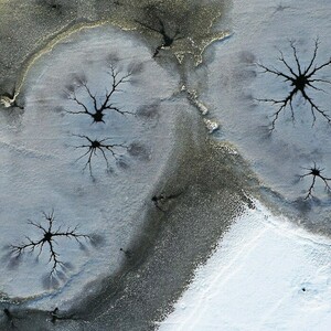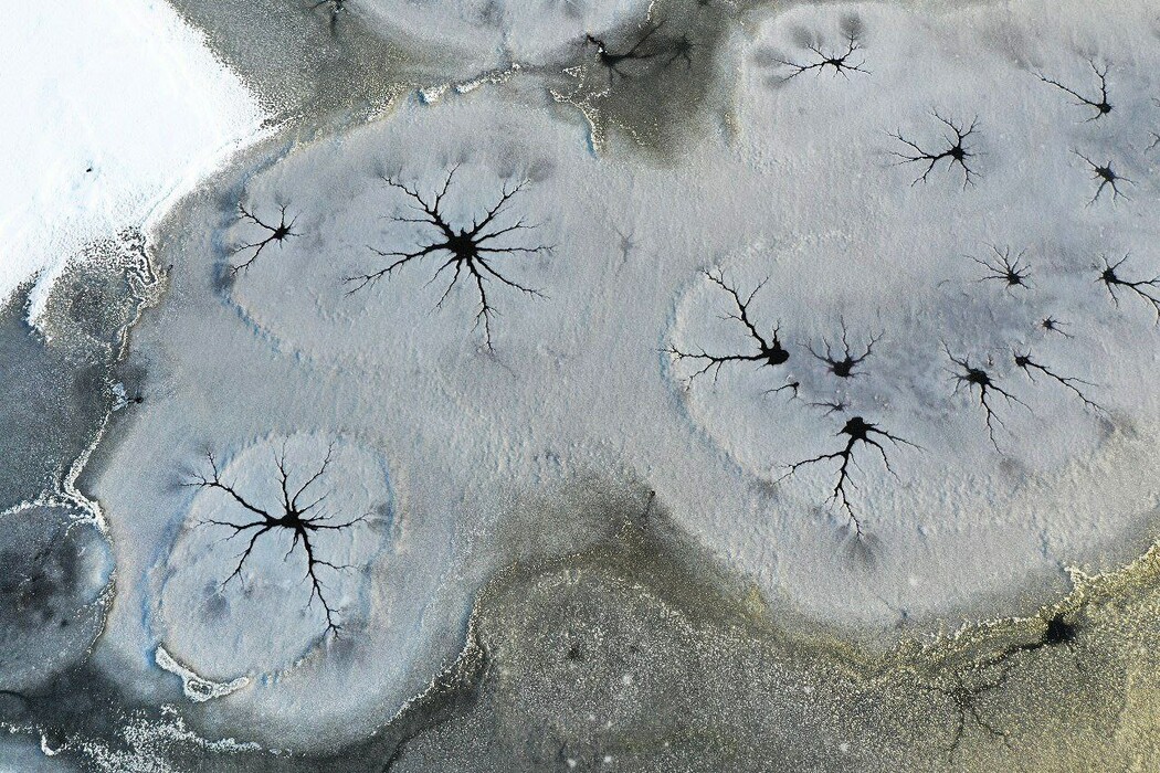 Удивительные узоры при замерзании образовались на одном из озер в Муравьевском заказнике Приамурья. Как отметил ученый Антон Сасин, опубликовавший фотографии в своем телеграм-канале, на поверхности образовались затягивающиеся полыньи, напоминающие нейроны.