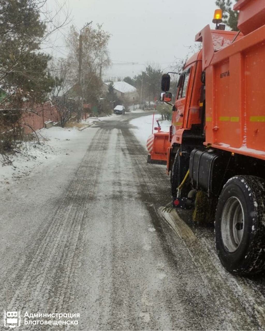 В Благовещенске идет снег. И, как сообщает городская администрация, в первую очередь коммунальщики чистят подъемы и кольцевые развязки.