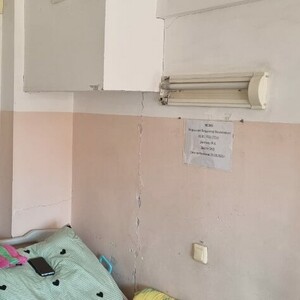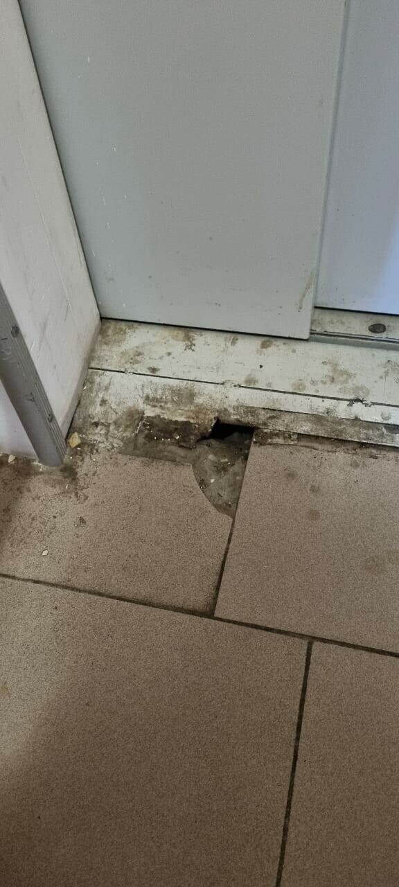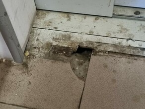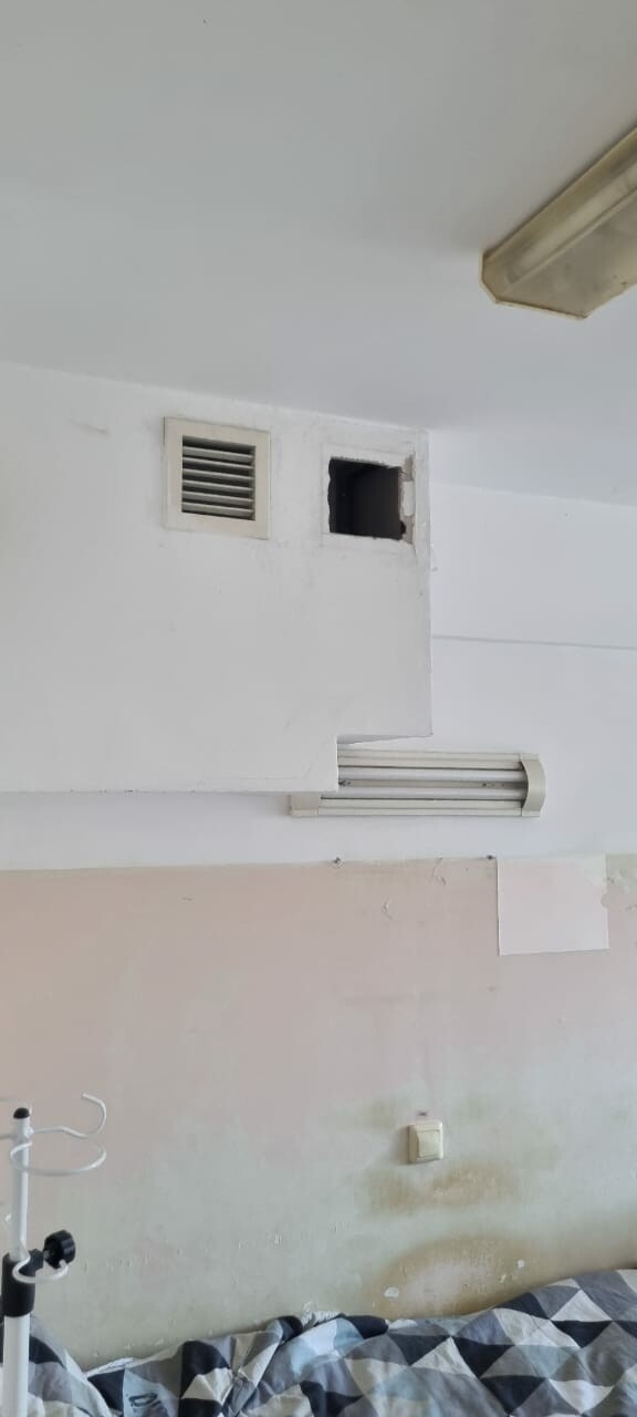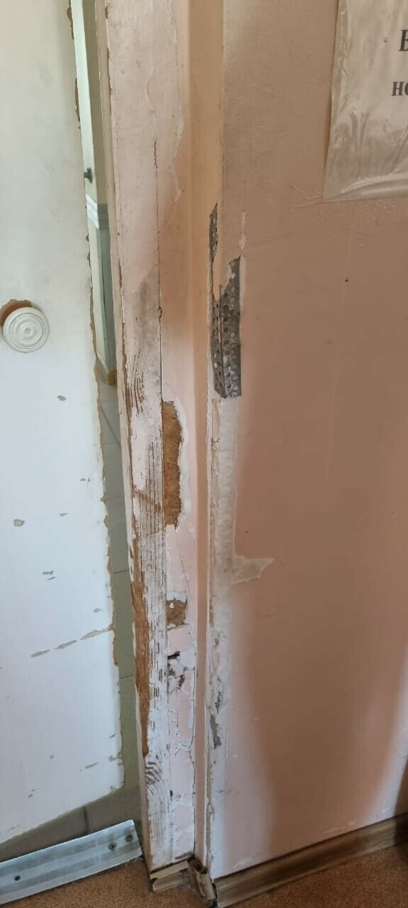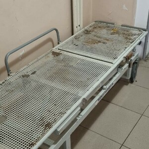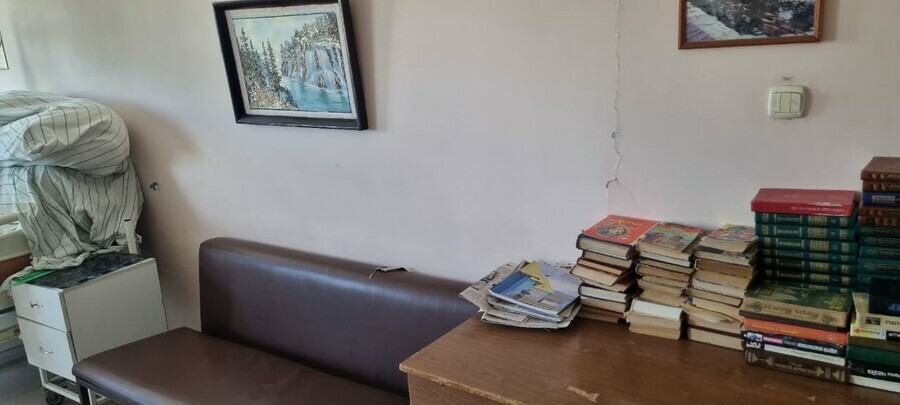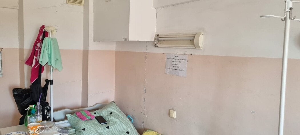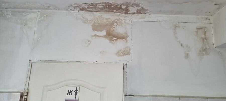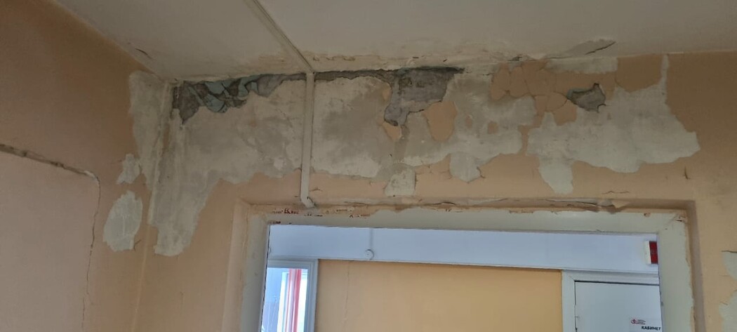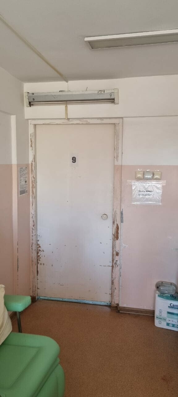 По снимкам видно, что стены в палатах и коридоре пошли трещинами, на потолках потеки от подтопления, штукатурка и краска отслоились, двери обветшали. Мебель и сантехника тоже требуют обновления, как и постельное белье для больных.