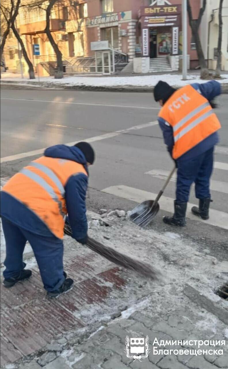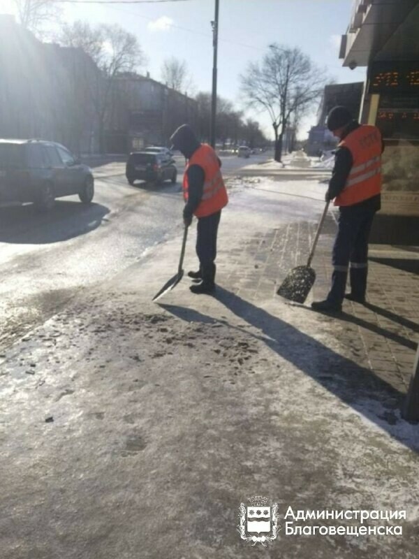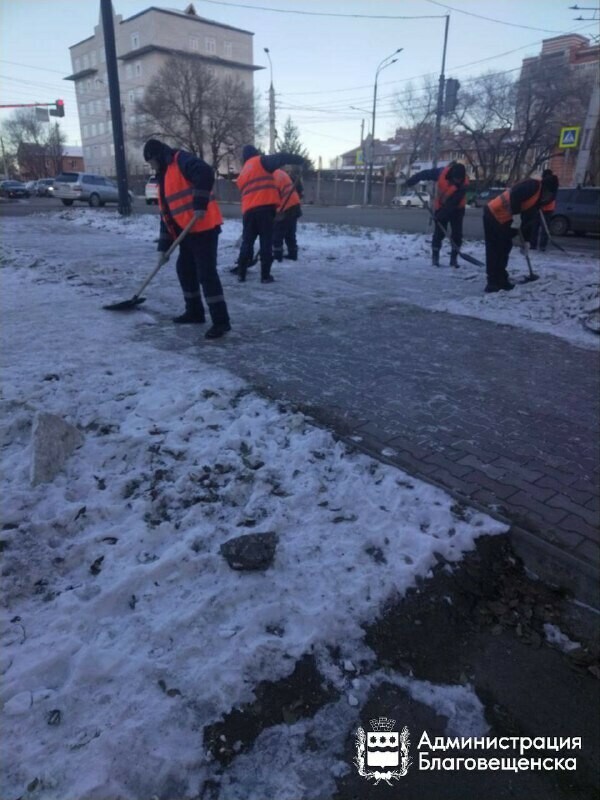 В Благовещенске спецтехника помогла ГСТК очистить около 80 километров тротуаров и больше 100 остановок. Об этом рассказали в администрации города.