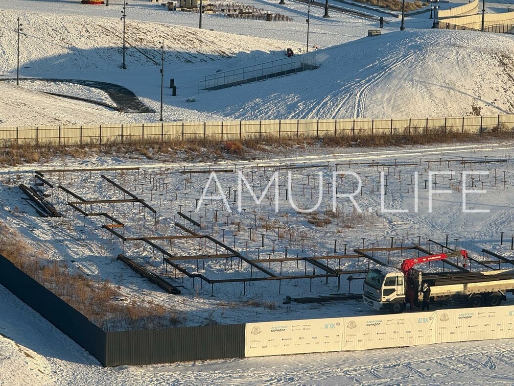 На территории «Трибуна Холл» амурской столицы стартовало обустройство нового объекта – ярмарочной площади «Амурские сезоны». Место будущего комплекса огородили, там также появились фундаментные винтовые сваи для будущих павильонов.