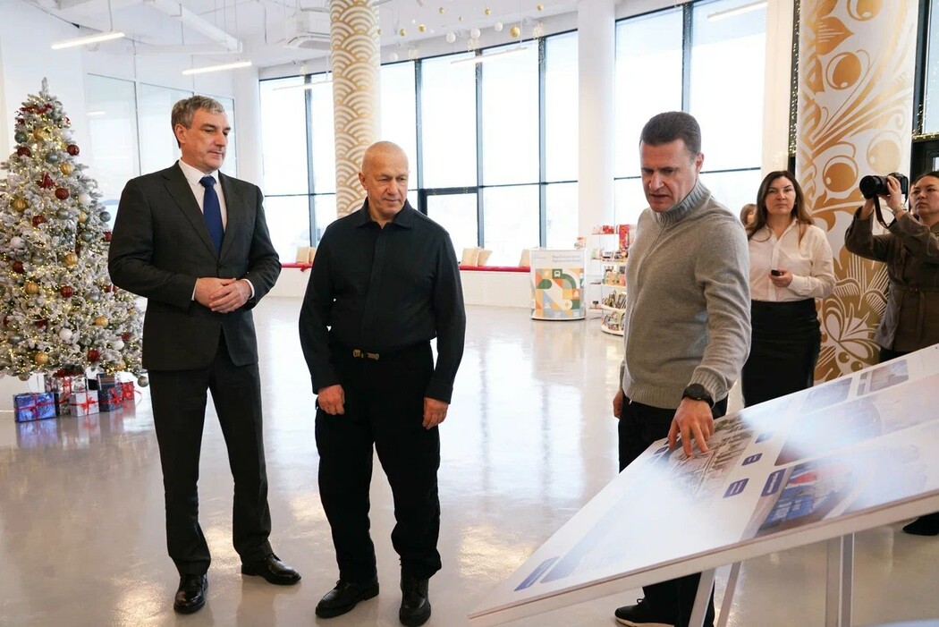 Председатель правительства РФ – полномочный представитель президента РФ в ДФО Юрий Трутнев с министром РФ по развитию Дальнего Востока и Арктики Алексеем Чекунковым посетили «Трибуну Холл». Высоким гостям рассказали о ключевых объектах мастер-плана Благовещенска, которые находятся в центральной части города на участке набережной Амура «Золотая миля».
