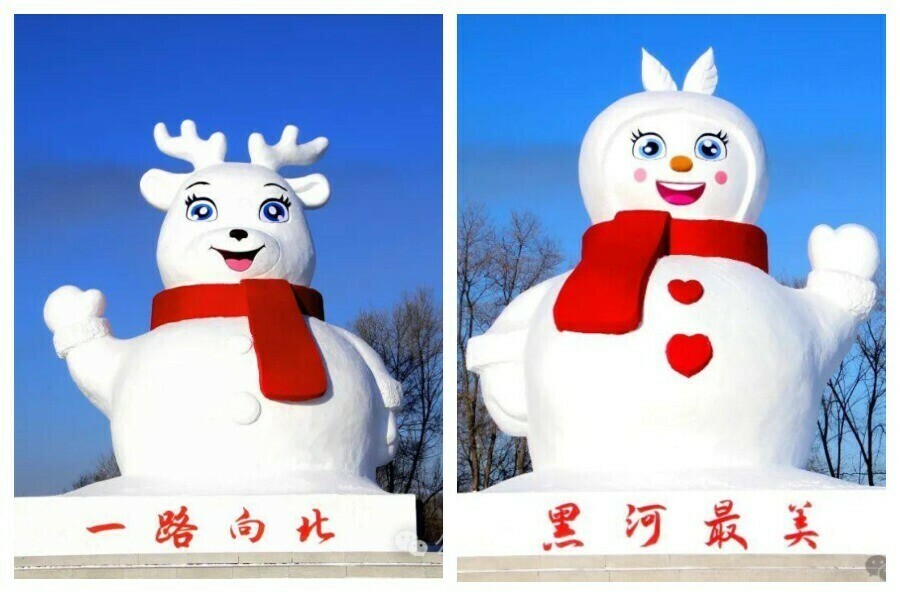 Два 11-метровых снеговика традиционно установят на площади Столетия в соседнем с Благовещенском китайском городе Хэйхэ. Фигуры будут выполнены в форме символов Хэйхэ: олененка Юю и соевого боба Доудоу.