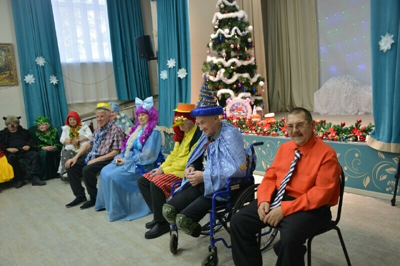 Кроме открытия двух этажей, после капитального ремонта состоялась и настоящая новогодняя ёлка. Получатели социальных услуг собрались в актовом зале и посмотрели представление, а также их поздравил с праздником Дед Мороз и Снегурочка. Кроме того, самые творческие пенсионеры нарядились в новогодние костюмы. Среди них была и Вера Малыхина, которая сама сшила себе костюм. А еще Вера Андреевна занимается ковровой вышивкой.