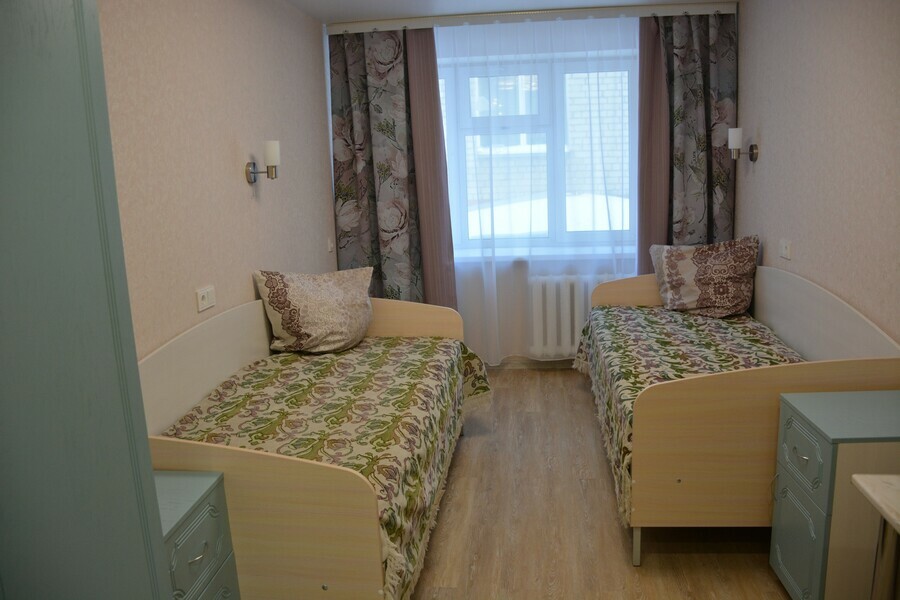 «Здесь после ремонта будут проживать получатели социальных услуг из отделения «Милосердие» – это люди, которые нуждаются в тщательном уходе и имеют ментальные нарушения. В рамках ремонта были выделены входные зоны, установлена сантехника для маломобильных групп, по всему периметру коридора установили поручни. На каждом этаже теперь появилась комната для принятия пищи, а также комната отдыха», – рассказал начальник медицинской службы Благовещенского дома-интерната Алексей Матвиенко.