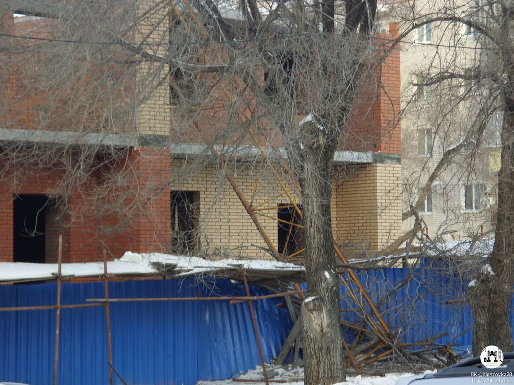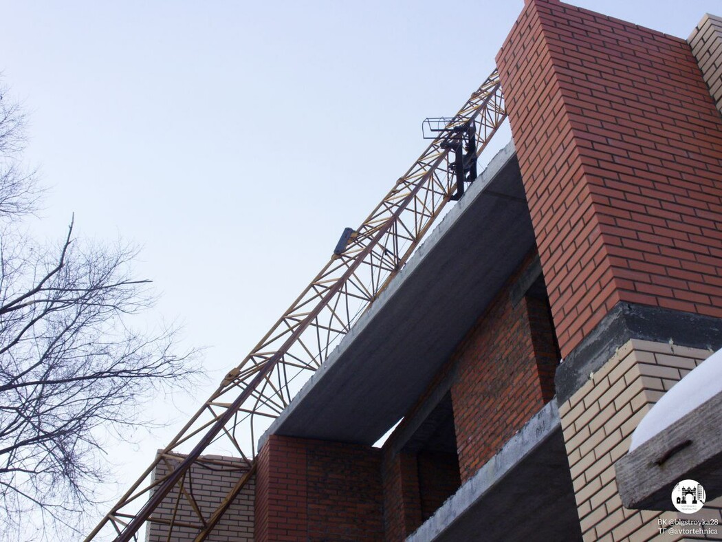 В Благовещенске при строительстве многоквартирного дома произошло ЧП. Стрела строительного крана рухнула вниз.