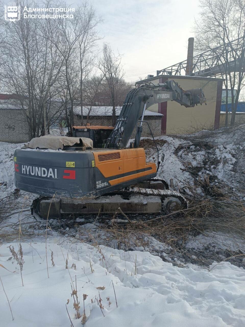В Благовещенске продолжается расчистка открытого русла реки Бурхановки. На прошлой неделе ГСТК зашли на самый загрязнённый участок в районе Асташинских озёр. Сейчас рабочие спиливают мешающие ветки деревьев вдоль русла и формируют площадку для размещения тяжелой техники.