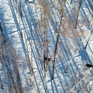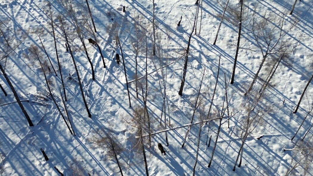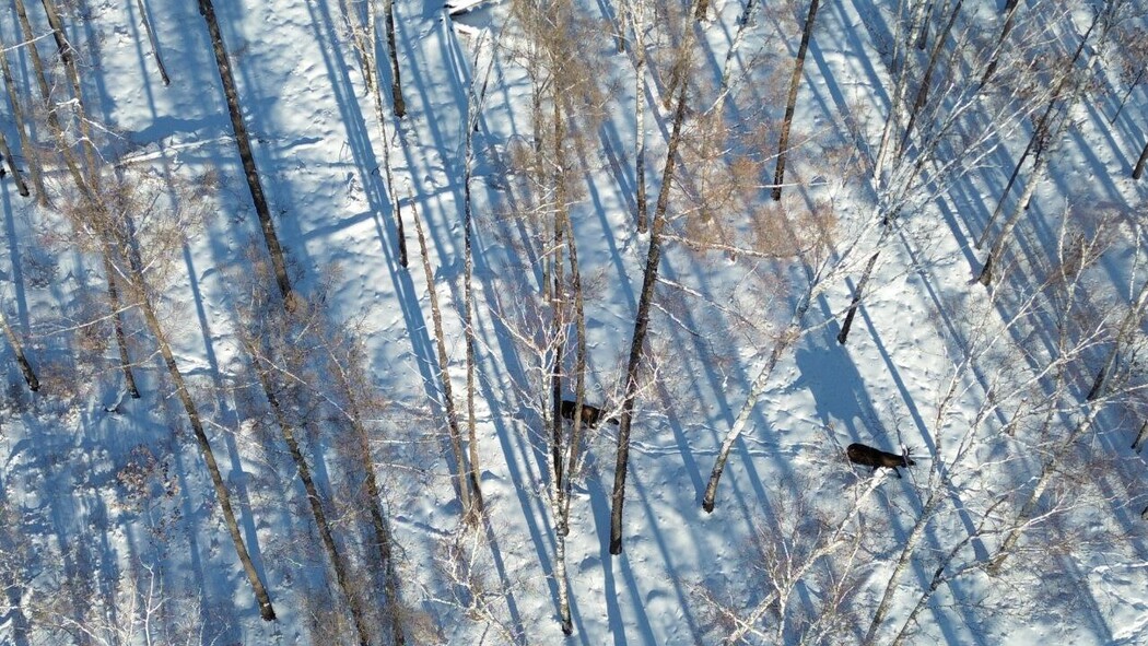 В Ромненском муниципальном округе Амурской области в кадр камеры квадрокоптера инспектора областного управления по охране животного мира попала семья лесных великанов. На снимках – лоси.