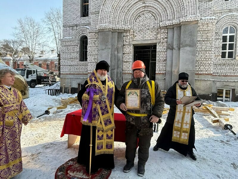 По завершении чина освящения архиепископ Лукиан выразил благодарность всем, кто трудится над созданием храма. За усердные труды во славу Святой Церкви владыка удостоил архиерейской грамоты генерального директора АО «Амурстрой» Александра Синькова.