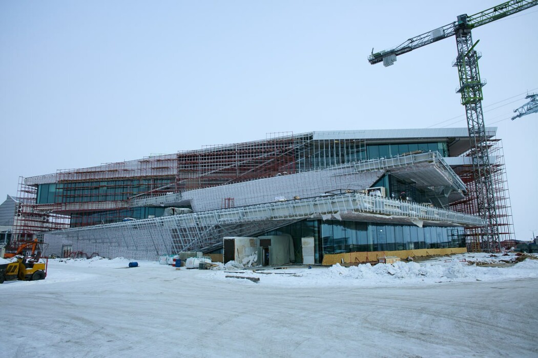 Сообщается что внутри здания на берегу Амура уже идет чистовая отделка, в марте возобновятся работы по размотке канатов. Первый канат трансграничной канатной дороги Благовещенск – Хэйхэ натянули между опорами 10 сентября 2025 года.